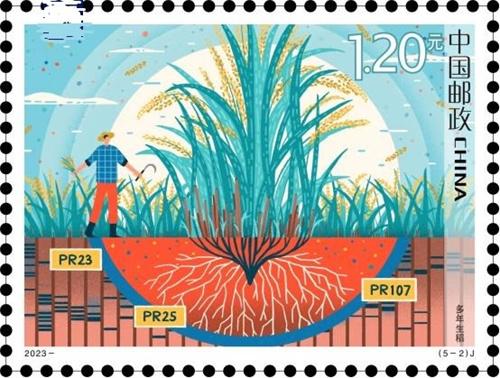 多年生稻紀念郵票,向大家展示全新的多年生稻,這種水稻種植一次就可以連續3~4年免更收獲,是一種綠色的,輕簡化的,可持續性的生產方式。對于其他類型的糧食作物的生產研究也具有一定的借鑒意義。