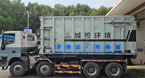 針對此城投環境加強終端轉運工作,調配了兩輛進博會轉運專用車還有一輛備用車輛,以及對應駕駛員將會安排專人專車專箱專位對接在進博會期間垃圾收運的工作。在每天上午垃圾轉運高峰期間將會開通綠色通道確保進博會會展垃圾優先卸料壓縮轉運,將做好會展垃圾相關數據的信息記錄,做到一車垃圾去向都可以通過數據溯源。