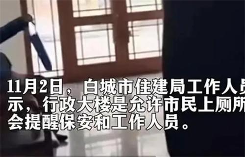 近日,網(wǎng)絡(luò)上流傳一段視頻引起社會各界的廣泛關(guān)注,該視頻畫面顯示,在吉林白城市住房和城鄉(xiāng)建設(shè)局的行政大樓內(nèi),一位市民來到這里想要借用廁所被現(xiàn)場的保安攔住,聲稱行政大樓里的廁所不對外開放。隨后,該市在另外一名工作人員帶領(lǐng)之下,前往另一棟大樓的廁所,這里的廁所被鎖住了而且門上貼著等待維修的字樣,雙方因為此事又引發(fā)了言語沖突,工作人員在視頻中呵聲道,行政大樓廁所不對外。