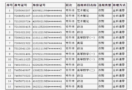 在北京時間的11月3日,北京教育考試院將2023年成人高考違規考生的名單對外進行了公布,這份名單里面違規考生總共有15人,這15名考生在考試的時候由于作弊,因此北京教育考試院也對這15名的考生做出了全科清零的處罰。