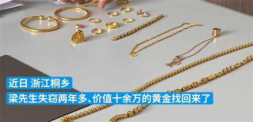 警方幫梁先生找回了丟失的黃金首飾價值10萬余元。經(jīng)過現(xiàn)場清點,發(fā)現(xiàn)一共有2個金手鐲,3條金手鏈,6條金項鏈,還有12枚黃金首飾,失而復得的喜悅是任何人都無法知曉的,畢竟這些首飾值10萬多元。梁先生的黃金是在兩年前失蹤的。