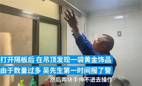 民警表示當時專門去胡某某家里很多趟,能夠想到的地方都找了,但始終都找不到剩下的黃金首飾以及其他財務,以為是被胡某某揮霍掉了,胡某某因多次盜竊總共30萬余元的犯罪事實被判11年有期徒刑。但剩下的首飾和錢都沒有找到,民警近期接到了衢州開化縣公安局馬街派出所的電話。衢州開化房東胡先生迎來了新的租客,在租客入住之前,胡先生就打算對自己的房子進行翻新,找來了水暖工吳師傅,吳師傅在給洗衣機安裝水管的時候,發(fā)現(xiàn)3樓衛(wèi)生間的天花板中,有一個很沉的塑料袋,里面全部都是黃金首飾。數(shù)量很大就很不正常,所以吳師傅立即報了警。