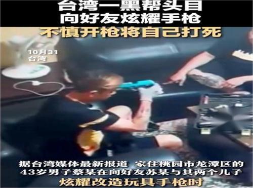 據(jù)悉10月31號桃園市龍?zhí)秴^(qū)43歲的蔡某向他的好友蘇某以及其兩個兒子展示自己改造好的手槍時發(fā)現(xiàn)槍支出現(xiàn)了故障,根本沒有辦法正常發(fā)射子彈,蔡某為了向他們證明槍支確實是出現(xiàn)了問題沒有辦法正常發(fā)射,于是將槍口抵住自己的額頭扣動了手槍扳機,第1次嘗試的時候手槍確實沒有發(fā)射子彈,槍支沒有任何反應(yīng)因此蔡某又第2次摳動了扳機,這個時候意外發(fā)生了子彈正常發(fā)射出膛悲劇瞬間發(fā)生。事故發(fā)生之后蔡某的妻子和蔡某的朋友及時將蔡某送醫(yī)報警,蔡某因為傷勢過重在醫(yī)院不治身亡。