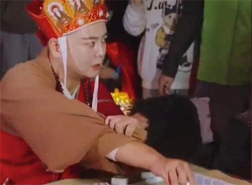 田向陽的抖音賬號已經有86.5萬粉絲了,他在21年6月份就開始上傳自己扮演唐僧的視頻,幾乎每天都會直播,在直播時穿著紅色袈裟。網友送禮物的時候會在臉上展示禮物特效,男子就一臉驚恐,試圖用袖子將特效甩開,并且口中念念有詞,這是哪里來的妖怪。