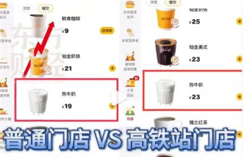 經(jīng)過記者走訪調(diào)查發(fā)現(xiàn)在麥當勞的普通門店中所銷售的熱牛奶價格基本上是19元,一部分位于高鐵站的門店熱牛奶售價則是23元。對于不同門店方面的價格差異工作人員表示,商圈不同有一部分的商品在價格上也會出現(xiàn)不同。