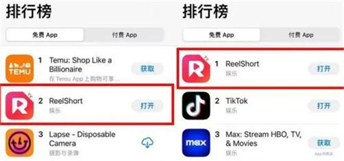 根據7麥統計的數據,顯示在11月1日ReelShort這個軟件在美國的iOS免費榜中排名還站在400多位,在11月13日的時候短短12天的時間讓這部軟件在美國iOS免費榜直接升到第2名。