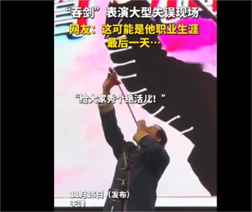 根據(jù)北京頭條最新報道,近日天津的一名網(wǎng)友在社交平臺上發(fā)布一些視頻,可以通過視頻看到臺上有一名男子在表演一個經(jīng)典的魔術(shù)吞劍,在男子做足一系列的準備之后突然間劍身縮回劍柄里。這時臺下的觀眾哈哈大笑,該男子以笑聲掩飾自己的尷尬。看到該男子上傳的視頻之后網(wǎng)友紛紛在下方評論“這個大型失誤現(xiàn)場,也破解了我多年的疑惑”。有網(wǎng)友評論“這場表演是不是這個魔術(shù)師職業(yè)生涯中的最后一天,因為他開創(chuàng)了新的揭秘表演方式”。