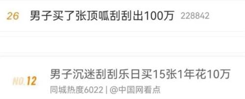 很多網(wǎng)友都表示我一年都掙不了10萬塊錢,我為什么要花10萬塊錢去買刮刮樂,除非它能給我?guī)泶螵?jiǎng)。對(duì)于刮刮樂這種娛樂性的彩票,網(wǎng)友可以當(dāng)做是緩解壓力的一種方式,偶爾嘗試一下切不可抱著一夜暴富的想法會(huì)讓自己深陷泥潭。