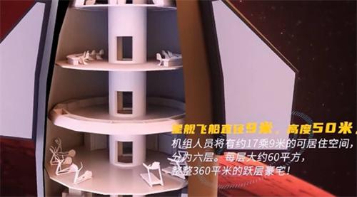 根據(jù)模擬出來(lái)的星艦內(nèi)部構(gòu)造可以看到就仿佛一座高達(dá)6層的太空豪宅,第1層的位置在燃料罐的正上方,第2層的位置很可能是用來(lái)儲(chǔ)存或者是一間實(shí)驗(yàn)室,第3層則是用來(lái)健身和盥洗室專(zhuān)為長(zhǎng)時(shí)間失重狀態(tài)而設(shè)計(jì)出來(lái)的。第4層的位置主要是用來(lái)星艦內(nèi)部機(jī)組人員的臥室,能夠讓人們適應(yīng)不同旅行需求。第5層顯示是一個(gè)豪華餐廳也是為宇航員能夠欣賞星空所提供的一個(gè)場(chǎng)所。最頂層也是第6層是一個(gè)駕駛室專(zhuān)為星艦船只狀態(tài)監(jiān)控以及導(dǎo)航控制而設(shè)立的,這一座非常豪華的太空豪宅不光擁有非常舒適的居住空間,在內(nèi)部還添加了各種生活設(shè)施,能夠給宇航員提供百分百的保障。