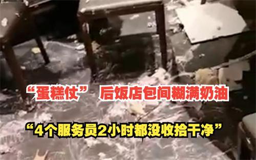 據(jù)相關(guān)新聞報道,在江蘇南京的一家飯店包間里,有三桌顧客正在包間里進(jìn)行吃飯,結(jié)果蛋糕成為武器,互相的投擲,打蛋糕仗將飯店包間糊滿奶油。原本干凈的桌椅、墻壁、地板都成為這場戰(zhàn)爭的犧牲品。