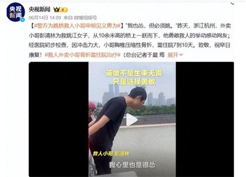 據了解這名跳橋救人的小哥其實是外賣騎手,當時他在送餐突然發現有人跳橋自殺,沒有多做思考之后立刻脫下衣服跳入到河里面去把人給救了上來,由于當時并沒有做任何的防護措施,因此在將人救上來之后這名小哥也是出現了胸椎壓縮性骨折,這是因為在入水的時候受到沖擊力所導致的,隨后小哥也是同樣被送到醫院進行治療。小哥在身體恢復之后也是重新投入到自己的工作當中,在此期間還申請成為了杭州亞運城市的志愿者,而他也是一名大學生。