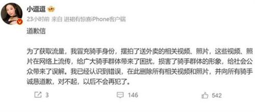美團外賣在公告中表示,最近這些時間以來,部分網絡自媒體博主為了獲取流量冒充外賣騎手進行虛假擺拍,惡意散播一些不實的消息,誤導社會的公眾言論,同時,這一行為嚴重損害了騎手群體的整體形象。這四名被起訴的網紅中,還包括了前段時間冒充女性外賣員擺拍引起社會異議的網紅小逗逗。