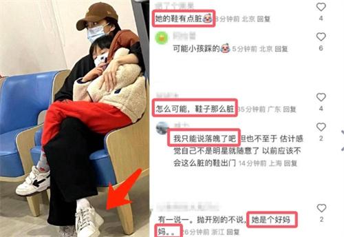 據曝光的網友介紹稱,自己當時和閨蜜一起帶孩子去急診看病,在等待的過程中偶然發旁邊有一對母女,非常像Angelababy和小海綿。這名網友在發現了之后,悄悄的跟了這對母子一段路程,最終確認這對母子確實是 Angelababy和小海綿,當時還有一位阿姨與二人同行,因此推測這名阿姨很有可能是孩子的保姆。Angelababy當時的著裝一改以往在鏡頭前出現時那樣時尚大方而是穿著十分普通的寬松的黑色休閑裝,腳上穿著一雙白鞋,白色運動鞋,看上去臟兮兮的。Angelababy抱著孩子在醫院的椅子上坐著,孩子則十分乖巧的依偎在媽媽的懷里。Angelababy整個人顯得十分落寞和憔悴,如果不仔細看,根本就發現不了是一位明星。