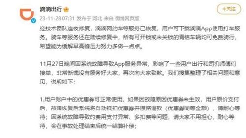 這一次宕機事件發生之后,滴滴平臺也發布了一系列的后續補償措施,對于用戶賬戶當中有優惠券無法正常使用的相關問題。滴滴平臺表示會對相應的扣款渠道進行退回,同時在這一次宕機事件中受到影響的司機師傅,后續也會給予相應的補償,不過這些補償恐怕不能完全消除用戶和司機們所受的實際損失。