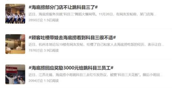 顧客來到海底撈只需要給服務(wù)員說出我要科目三,就會(huì)有服務(wù)員立馬來上一段魔性的舞蹈,搭配上節(jié)奏鮮明的音樂,讓火鍋店看科目三舞蹈的話題瞬間登上熱搜榜,甚至專門去火鍋店點(diǎn)科目三的人也開始多了起來,一些服務(wù)員也因?yàn)樘颇咳诰W(wǎng)上走紅。有的門店舞蹈現(xiàn)場(chǎng)甚至粉絲瘋狂的拿手機(jī)拍照,稱其為追星現(xiàn)場(chǎng)都不為過。