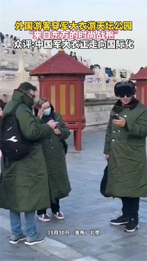 近日,網上流傳出了一段外國游客齊穿軍大衣打卡天壇的視頻,這段視頻被上傳到網絡之后,也引發(fā)了網友們的熱切討論。網上所傳播的視頻內容中,也可以清晰的看到有很多外國游客在當時正在天壇拍照留念,然而這些外國游客身上所穿著的軍大衣成為了當時極其亮眼的一幕,有游客在將這些外國游客穿著軍大衣在天壇拍照留念的一幕上傳到社交平臺之后新引發(fā)網友們的激烈討論,同時還有很多網友紛紛對這些游客的穿著表達了自己的看法。