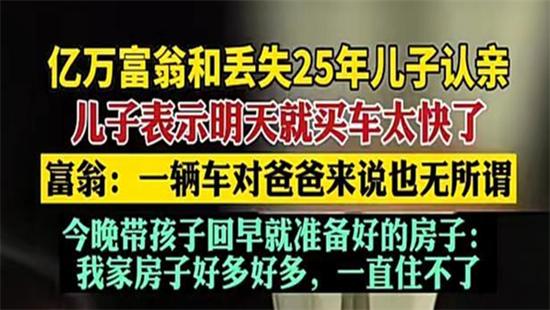 近日,河北億萬富豪解克鋒成功尋子的消息引發(fā)大眾關(guān)注接受,記者采訪的時(shí)候解克鋒表示聽到兒子說住賓館之后心疼的直掉淚,因?yàn)樽约杭依锩娣孔雍枚鄡鹤訁s在外面受苦。解克鋒和自己的兒子解清帥失散了25年的時(shí)間,功夫不負(fù)有心人終于在12月1號(hào)雙方相見這一刻父子兩人淚流滿面緊緊相擁。