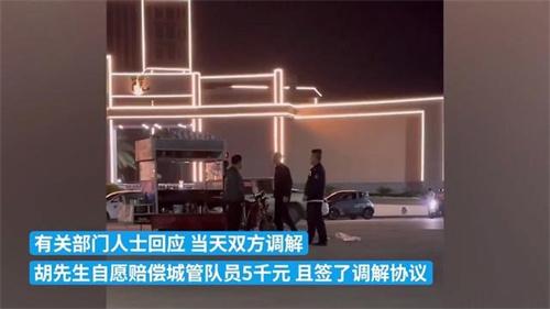 通過相關(guān)情況的通報發(fā)布,于2023年11月20日晚上9點由北海市綜合行政執(zhí)法局銀灘執(zhí)法大隊執(zhí)法人員從金海岸大道康養(yǎng)學院路段巡查過程當中,發(fā)現(xiàn)攤主胡某是出現(xiàn)違規(guī)占道經(jīng)營的行為,在多次勸導對方情況下。胡某仍然不服管理,當場執(zhí)法人員作出暫扣車輛的決定,然而雙方產(chǎn)生爭執(zhí),胡某將放在攤車里的刀具拿出來之后強行上車,于是現(xiàn)場的工作人員黃某和胡某在爭奪刀具的過程當中,使黃某的右手受傷。成功將刀具拿下之后的黃某沒有及時控制情緒出現(xiàn)不當?shù)男袨椋髞黼p方已經(jīng)在現(xiàn)場和解,前往轄區(qū)派出所簽訂和解協(xié)議,攤主胡某向黃某支付賠償款,又主動的將黃某送到醫(yī)院進行治療。