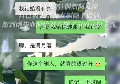 根據(jù)白露視頻最新報道北京時間11月29號,四川成都的劉女士發(fā)現(xiàn)自己不知什么時候被大學(xué)室友刪除了微信,想到自己在剛畢業(yè)時就給對方隨了500塊錢的份子錢,因此劉女士又重新加回了對方的好友向?qū)Ψ揭亓诉@筆份子錢。劉女士將自己的這個遭遇發(fā)到了網(wǎng)上,網(wǎng)友紛紛夸贊劉女士的這種做法沒毛病。