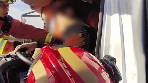 視頻當中顯示,12月6日12點左右,位于京哈高速公路北京方向379公里處發生車禍,在現場貨車追尾掛車,消防人員緊急救援,在現場拍打司機,不要睡覺,一邊拍打一邊救援,兩分鐘之后駕駛室撐開足夠的空間,救援人員將司機從擋風玻璃處成功的營救出來。為了防止司機昏迷過去,救援人員與司機不斷的溝通和鼓勵,20分鐘的聊天,救護車到達現場。救援人員將司機送到救護車上,移交給交警部門,現在事故的原因正在進行調查當中。