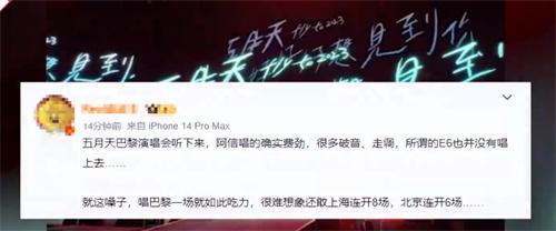此次巴黎演唱會是五月天否認(rèn)假唱之后的首次露面演出,阿信在這場演唱會當(dāng)中連唱三個小時不曾停歇,整個人的狀態(tài)也有些略顯輕松。這個演唱會原定于凌晨三點開演,不過卻由于一些原因?qū)е卵舆t了15分鐘,這些問題并沒有影響歌迷們在線觀看演唱會的熱情。