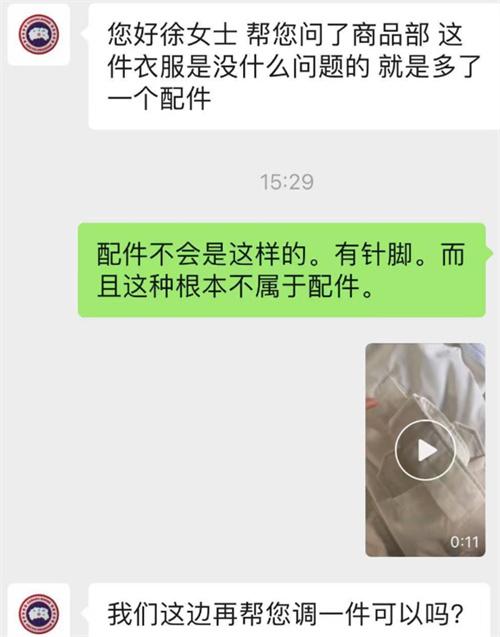 接到徐女士的投訴之后,記者聯系到加拿大鵝的涉事門店,該店工作人員在接到媒體來電后表示不方便直接回應,稍后會有公司市場專員與記者聯系。12月8日,加拿大鵝公司提出給徐女士換貨并且補償一份小禮品的致歉方案,徐女士目前已經和該門店就賠償一事達成一致。