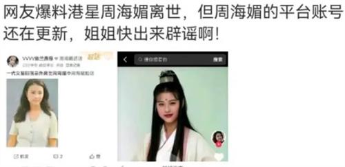 針對網上出現周海媚去世的消息北京晚報也發表了觀點,稱近期“被去世”烏龍頻繁上演,而這兩天網上又出現了著名港星周海媚離世的消息,在多家媒體的求證之下網上的爆料者刪帖跑路,目前根據知情人士透露周海媚還在醫院中接受治療并沒有過世,也請各界不要以謠傳謠。楊絳、金庸等都飽受著被離世困擾,而國外的一些名人比如湯姆克魯斯、尼古拉斯凱奇、拳王泰森等等也都沒有逃過被離世的謠言,為何被離世烏龍頻繁上演歸根結底還是要源于一些博主,為了博取眼球博取流量但這種行為不光缺德還違法。也希望各界人士不要拿著聽說、據傳之類的模糊詞當做擋箭牌在網絡上信口開河。