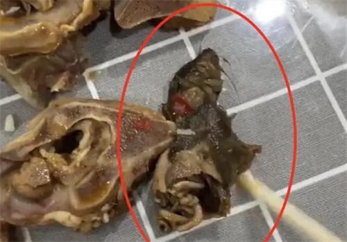 據悉,顧客是在外賣平臺選購的羊肉火鍋外賣,從相關的視頻中能看到,桌上放著幾盤火鍋食材,外賣盒的旁邊還有吃剩下來的羊肉骨頭,骨頭旁邊赫然有一塊老鼠形態的異物,像半只老鼠,尤其是在頭部的位置能看到胡須和牙齒。拍攝者是視頻展示,他一邊拍一邊用筷子扒拉著疑似老鼠的異物,同時他也向市場監督管理局投訴,相關部門接到投訴后第一時間展開核查。