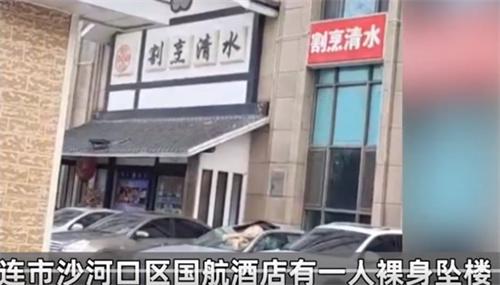 北京時間12月13號,網上流傳大連市沙河口區國航酒店有一男子裸身從樓上墜地引發大眾關注。針對網上傳言當地警方回應該案件正在處理中,墜樓男子發現時已沒有生命體征。根據網上流傳的視頻顯示,停靠在該酒店前方的有一輛銀色的小轎車上有一個人趴在車頂,而車頂上方有明顯的塌陷,視頻還拍攝到該酒店高層有一扇窗戶破裂。據視頻拍攝者表示自己看見有一個人沒有穿衣服,把一輛銀色的小轎車砸了,現場不讓亂拍,我路過該地點的時候警察已經到了該男子的腰部直接砸進車里。