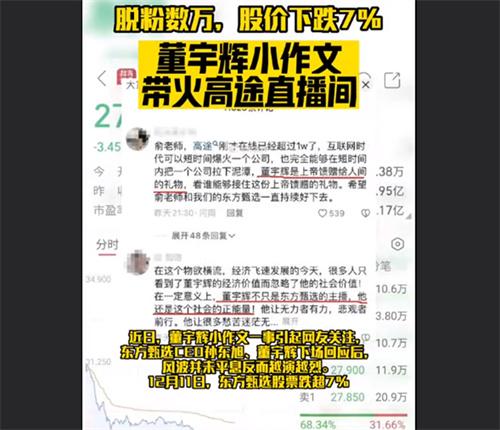 近日,一場小作文風波引發了董宇輝粉絲群體和東方甄選之間的博弈,這一場風波的起因是有關于東方甄選天花板級別文案到底出自誰手的爭論,在這一場爭論當中,東方甄選的CEO孫東旭和董宇輝本人也紛紛出面回應這起事件,不過多方的出面回應,也并沒有讓這起風波就此平息,反而是引起更多人的爭議與圍觀。正在東方甄選后院起火之際,高途旗下的高途佳品直播間卻迎來了破天的富貴,很多頂著東方甄選燈牌的網友紛紛涌進高途佳品的直播間,這一場景讓該直播間變得熱鬧非凡。