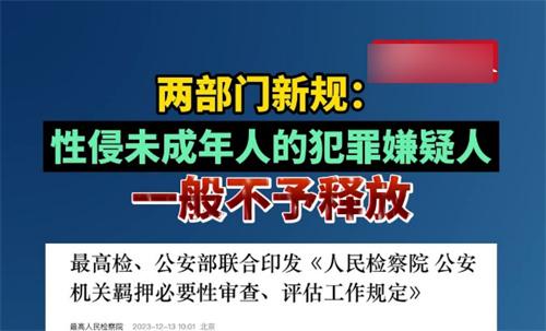 12月13日最高人民檢察院、公安部對外發布《人民檢察院 公安機關羈押必要性審查、評估工作規定》,其中涉及到對涉嫌性侵未成年人的犯罪嫌疑人一般不予變更強制措施,引起了人們的關注。