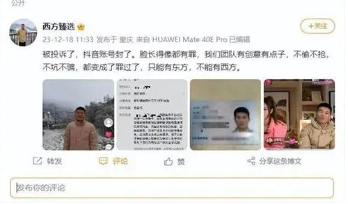 近日東方甄選風波四起,某個短視頻出現了西方甄選,還有“山寨董宇輝”亮相,很快該帳號被封,官方稱仿冒假冒不應當蹭熱度。12月16日,東方甄選官宣免去了孫東旭的CEO職務,俞敏洪和董宇輝也在直播間回應了最近的各種風波,17日在某個短視頻平臺就出現了一個“西方甄選”,與東方甄選很多相似的地方,甚至還有一名酷似董宇輝的主播。