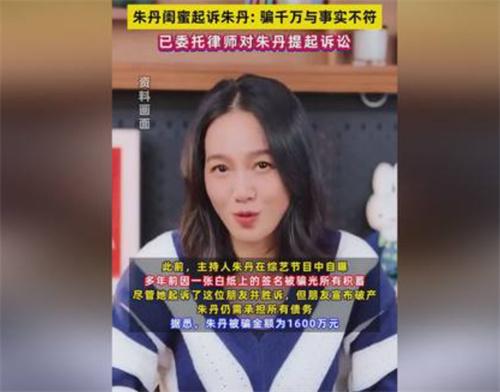 近日,朱丹被騙案的當事人田笑蜜發布視頻回應稱,網傳的一些事情與事實真相不符,目前自己已經委托律師維權。此前在芒果TV的一檔綜藝節目中,朱丹爆料自己多年曾經在一張白紙上簽名,被自己的閨蜜騙光了所有的積蓄,這件事情引得很多人對朱丹的同情。不過該事件隨著朱丹閨蜜田笑蜜的公開否認,事件背后的真相也開始變得撲朔迷離。