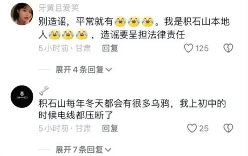 有積石山縣的網(wǎng)友稱“積石山縣每年冬天都會有很多烏鴉的”,甚至有網(wǎng)友稱在他上初中的時候還發(fā)生過烏鴉壓斷電線的事情,很多當?shù)鼐W(wǎng)友紛紛評論留言,讓發(fā)布視頻的作者不要傳謠。之所以有很多人將烏鴉這次的聚集視為地震征兆,主要還是由于烏鴉在中國文化中常常被視為是不吉祥的,可能因此帶來了恐懼。
