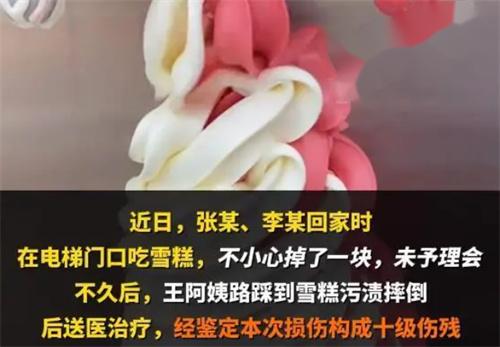 12月21日,廣東韶關(guān)市中級(jí)人民法院公開了這樣一起特殊的案例,吃雪糕的時(shí)候掉在地上了一塊沒有及時(shí)清理過往路人踩到掉在地上的雪糕滑倒受傷所引發(fā)的賠償問題。最終法院判決張某、李某作為危險(xiǎn)源的制造方需要賠償40%的責(zé)任,王阿姨在走路的時(shí)候沒有注意路面應(yīng)該承擔(dān)30%的責(zé)任,而小區(qū)的物業(yè)公司沒有能夠及時(shí)發(fā)現(xiàn)地面上的污漬承擔(dān)30%的責(zé)任。