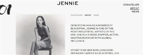 ODDATELIER在官方網站中發布了Jennie的頭像以及這個品牌的詳細介紹,在黑白底色的照片中,Jennie坐在一個椅子上看著鏡頭,外貌和表情吸引了廣大消費者的關注。在這家品牌的官網中,還將Jennie飼養的狗稱作為藝術家。因為在這家公司的背后注冊了多個商標權,所以網友們紛紛開始在論壇中討論Jennie的創業經歷。