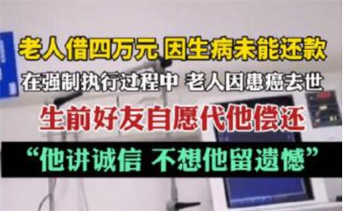 據了解,來自四川廣安一位七旬老人,生前與其他人借了將近4萬元,后來由于生病等原因并沒有還款,直到出借人申請強制執行過程中,患有癌癥的老人去世,自老人去世之后,法院想終結執行,但是老人生前一位好友自愿幫助老人償還債務。對于此事,記者在12月26日,從廣安市武勝縣人民法院了解,一位老人的好友已經幫忙還清全部的債務,并且這位好友表示,老人生前是一位講誠信的人,不愿意讓他去世之后留有遺憾。