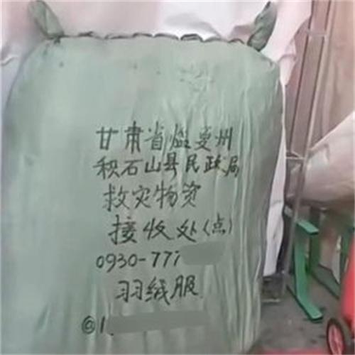 網友發布的視頻中顯示,某展銷會中出現了一個編織袋包裹,在這個編織袋包裹上面寫著的地址是甘肅省臨夏州積石縣民政局救災物資接收處,并寫明是羽絨服。網友質疑是不是有人在倒賣捐贈鎮區的物資,記者也在27日晚間聯系了積石山縣6.2級地震救災社會捐贈處,對方的工作人員表示,捐贈物資接收和發放都有嚴格的管理流程,不會出現倒賣的現象。