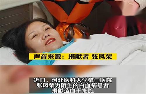 北京時間12月21日上午,張鳳榮在河北省醫科大學第三醫院完成了她的造血干細胞捐獻,將抽取的393毫升造血干細胞混懸液送到了患者所在的醫院,給這名白血病患者提供了新生的可能。