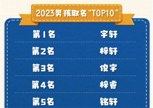給新生兒取名字可以根據孩子的八字和生肖進行取名,在取名的時候要盡量維持五行平衡,通過這樣的方式可以幫助新生兒取到一個好名字,12月30日,廣東省佛山市公安局公布了佛山地區2023年新生兒取名熱門排行榜,在這份排行榜單中宇軒是男孩子取得最多的名字,而且他已經連續兩年霸榜榜首的位置,第二名到第四名分別是梓軒,俊宇和梓睿,這些名字在最近這些年來也同樣有著較高的熱度。