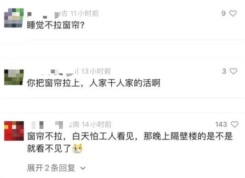 此外還有不少網友對高空作業的工作人員表示支持和同情,認為這些工人在高空作業中面臨著較高的風險,哪有心思去看其他的東西,工人們只是正常工作而已,博主有些自作多情了,對于這起事件引起的爭議問題,這位博主將此事分享出來,很有可能是因為發現窗外有高空作業的工人感到驚嚇,不過博主的問題處理方式或許有些不妥。