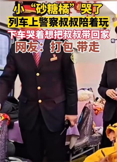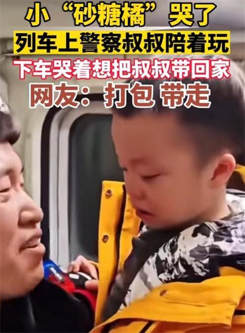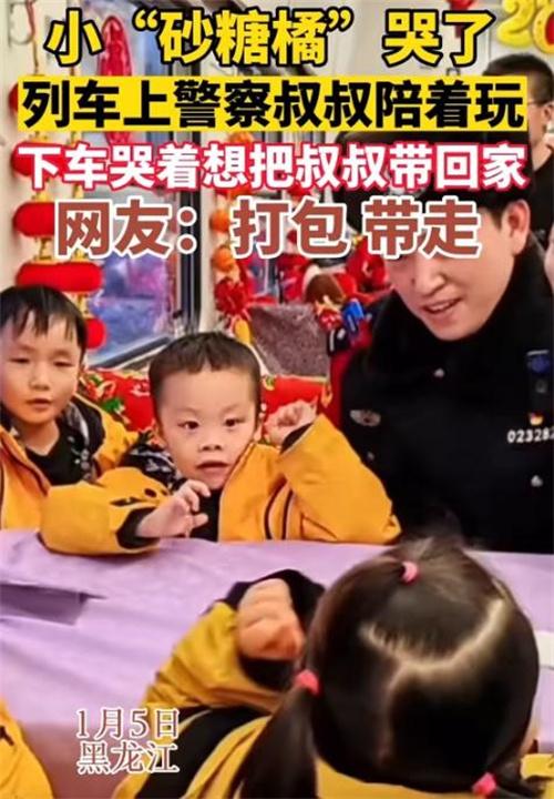 1月5日,在漠河回哈爾濱的這趟列車上面,出現了一位小小的不速之客,這個不速之客就是前段時間非常火爆的廣西砂糖橘。在列車停靠的時候,小砂糖橘趁機就溜進了列車車廂,恰好這個行為正好被一位巡邏的警察叔叔給看到了,警察叔叔走到小砂糖橘身邊,蹲下去和他交流,小砂糖橘似乎是感受到了警察叔叔的溫暖和親切,竟然緊緊的抱住了警察叔叔不松手,并表示想要把警察叔叔帶回南寧。這個小砂糖橘其實就是廣西的小朋友。