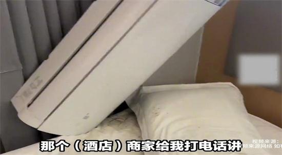 近日,江蘇南京的旅客高先生在入住一家酒店時,凌晨三點多遭遇驚魂一刻。他與朋友在房間內休息時,突然一聲巨響,房間內的空調從墻上脫落,砸到床頭。幸運的是,當時高先生與朋友并未在床上,否則后果不堪設想。