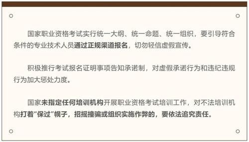 參加考試之前一定要積極的閱讀考試報名證明事項承諾書,國家對虛假承諾行為和違紀違規的行為加大了懲處的力度,互聯網上有很多不法培訓機構打著”保過”的幌子。大家一定要擦亮眼睛,不要被這些虛假信息欺騙,國家將對組織實施作弊或者是招搖撞騙的培訓機構依法追究責任。