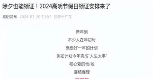 針對本次春節(jié)期間婚姻登記服務(wù)的調(diào)整,很多網(wǎng)友表示既體現(xiàn)政府對于市民需求的關(guān)心和關(guān)注,也體現(xiàn)了政府部門在保障服務(wù)質(zhì)量作出的努力。各地民政局部門也提前發(fā)布公告,希望各位情侶合理安排婚姻登記時間,廣大市民應(yīng)多加關(guān)注此項措施的實施。對于計劃在情人節(jié)前往辦理婚姻登記的市民,應(yīng)當(dāng)提前了解當(dāng)?shù)孛裾植块T的安排,以免白走一趟。