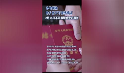 近日,全國多處民政局部門對婚姻登記服務(wù)進行了調(diào)整,規(guī)定除夕當(dāng)天將開放婚姻登記服務(wù),但是2月14日國際情人節(jié)不提供此項服務(wù),措施的調(diào)整目的在于確保婚姻登記工作有序進行,也為廣大市民提供便利的服務(wù)。