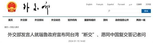 1月24日,外交部發言人汪文斌在主持例行記者會時,有記者提問汪文斌,中國和瑙魯恢復雙邊關系,中國是否計劃加強和瑙魯的投資貿易往來,并且向瑙魯提供資金援助,瑙魯共和國議會通過決議,決定和中華人民共和國恢復全面的外交關系。瑙魯共和國會議的首要任務是要確保瑙魯國家的利益,瑙魯共和國堅定奉行與各國和平相處,和平解決爭端的原則。