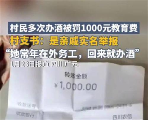 據悉,該村民多次在自家辦酒席,被親戚朋友們聯合舉報,為此他向媒體反映了自己遭受到的不公平現象。1月24日,燈塔村支部書記許凱對此作出回應稱,該村民因為被親戚實名舉報,據稱他在過去5年內辦過4次酒席,導致親戚隨禮的負擔較重。據許凱介紹,當地村民辦酒席需支付添份子錢,最低200元起,甚至可能更多。而該村民通過頻繁辦酒席牟利,引起了其他村民的不滿和抱怨,他表示,當事人在過去4年內已經自辦了婚宴、喪宴、生日宴,此次又辦了周年宴,頻繁辦酒引發了舉報。許凱強調,這筆所謂的“教育費”將會打入財政賬戶,并進行公示,用于當地農村衛生或者建設方面。根據當地村規民約規定,除了紅白喜事外,其他事由不允許置辦酒宴。