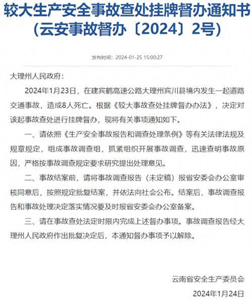 1月23日,云南建賓鶴高速公路賓川境內(nèi)發(fā)生了一起災(zāi)難性的交通事故,事故的起因是面包車與貨車在路段相撞,已經(jīng)造成8人死亡。這起悲劇再次提醒我們,安全無小事,任何時(shí)候都不能忽視交通安全的重要性。