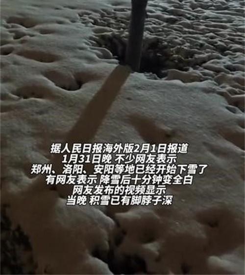 根據2024年1月31日河南省氣象臺發布的暴雪藍色預警,鄭州等地已出現大暴雪的現象,暴雪仿佛是自然界的魔法,鵝毛大雪紛紛揚揚,整個河南都被皎潔的雪花所覆蓋,積雪升到腳脖子處。